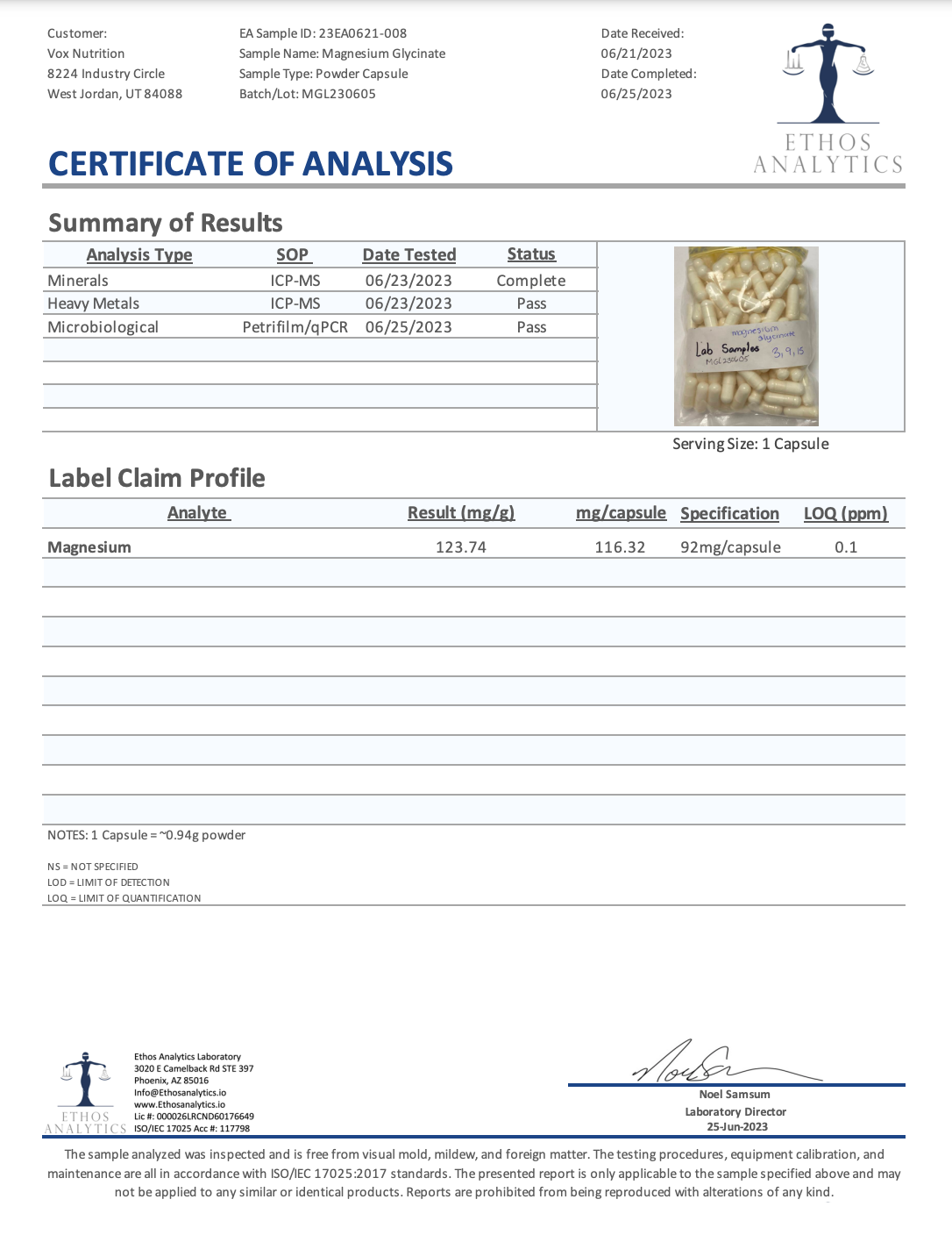 Ingredients: Magnesium (from 2.500mg Magnesium Glycinate), Hypromellose (capsule), Magnesium Stearate, Silicon Dioxide, Rice Flour.